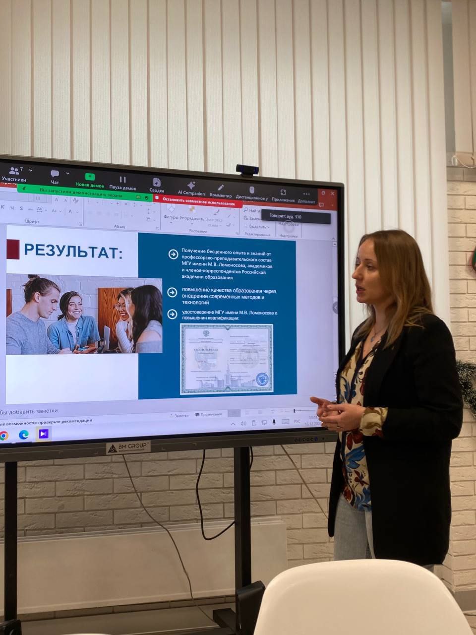 Е.А. Крикунова, Р.Р. Гасанова, Л.С. Селиверстова, В.А. Негрий подробно рассказали о том, какие возможности профессионального роста и развития предоставляет факультет педагогического образования. Будущие абитуриенты узнали о курсах переподготовки, курсах повышения квалификации и стажировке. Руководители программ подробно ответили на вопросы гостей и обстоятельно и развернуто рассказали о том, какими знаниями необходимо обладать настоящему учителю и педагогу, а также о том, как на факультете педагогического образования можно повысить квалификацию или продолжить свой исследовательский поиск.