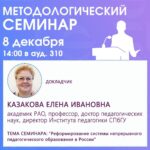 Уважаемые коллеги! Выступит Казакова Елена Ивановна – академик РАО, профессор, доктор педагогических наук, директор Института педагогики СПбГУ, признанный эксперт в области подготовки педагогических кадров, развития общеобразовательной школы, межкультурного обучения, направленного на формирование диалога и взаимопонимания в поликультурной среде. Тема доклада: «Реформирование системы непрерывного педагогического образования в России» Проведение методологических семинаров на факультете способствует развитию образования в нашей...